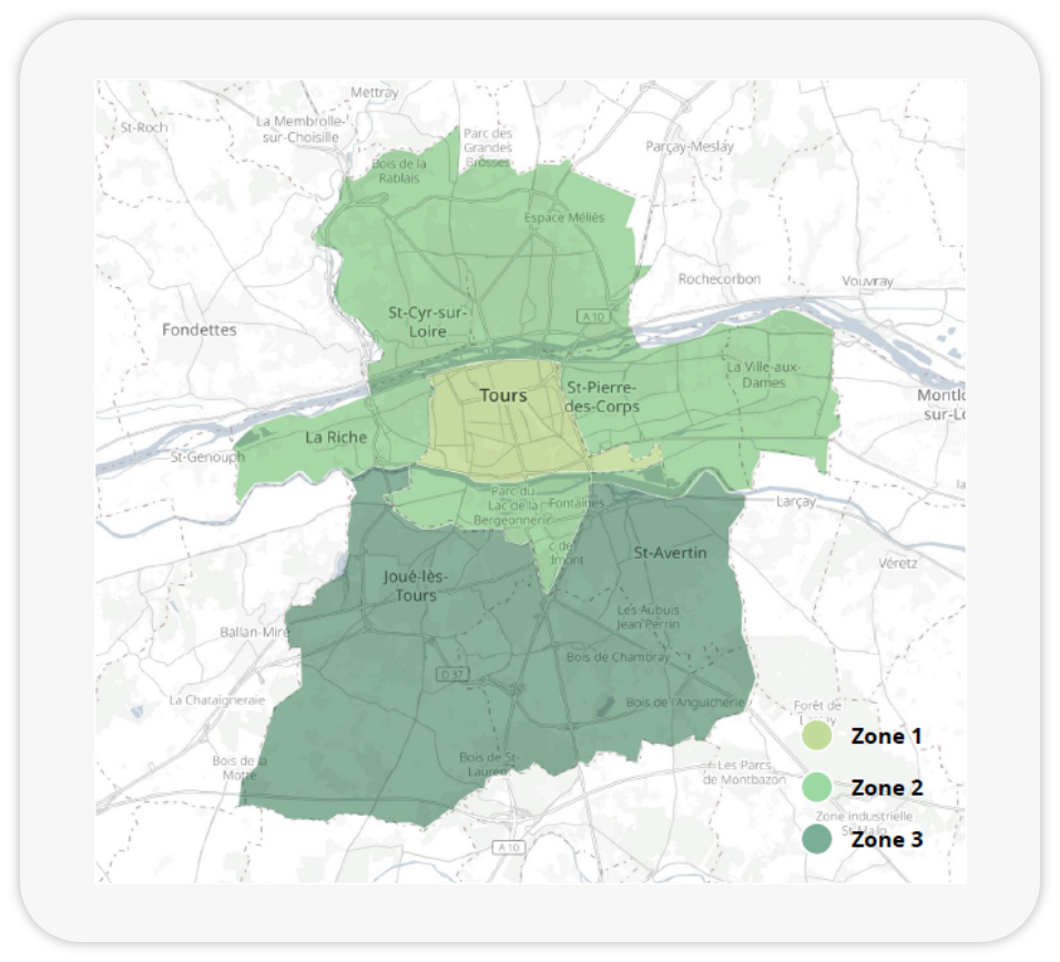 Zone 2 : Tours Nord, Tours Sud, Saint-Pierre-des-Corps, La Ville-aux-Dames, La Riche, Saint-Cyr
